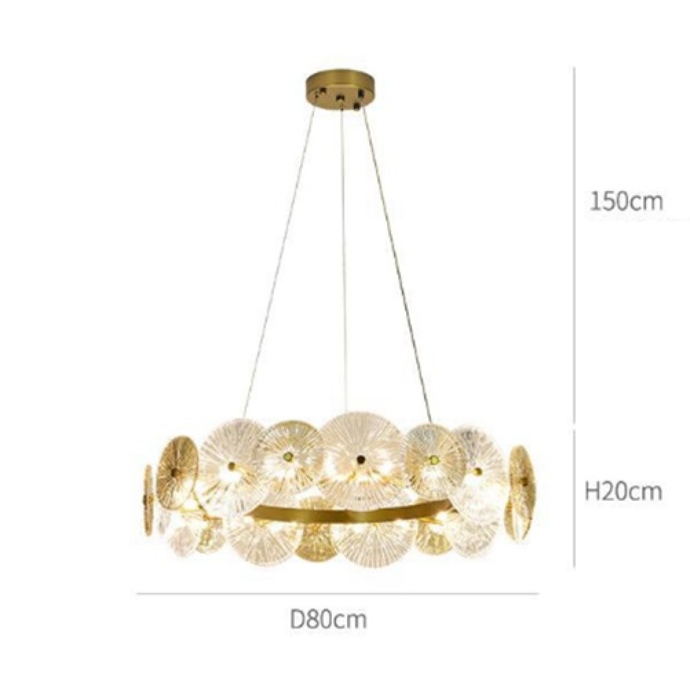 Потолочная люстра DAISY – изящное осветительное устройство с нежным флористическим дизайном. Золотистый металлический каркас напоминает изысканный венок, состоящий из множества цветов различных оттенков. По окружности располагается красивый прозрачный декор из стекла. Лучи света проникают сквозь 2 рифленых стеклянных диска разного диаметра. Роскошная стеклянная люстра создана высотой 1200, диаметром – 800 мм. Источники освещения – 16 галогеновых ламп мощностью до 40 W, с типом патрона – G9 Аналог:Люстра подвесная St luce SL1657.203.10Modelux Подвесная люстра ModeSTYLE MS.1831.12Подвесная люстра Maytoni AsterЛюстра Лас Светас 83008/6Подвесной светильник Indigo Miele 12021/7PПОДВЕСНАЯ ЛЮСТРА 9088 D500Люстра подвесная St luce FLEROПОДВЕСНАЯ ЛЮСТРА MAYTONI MOD007PL-10Подвесной светильник Vele Luce Sirena VL3203P08