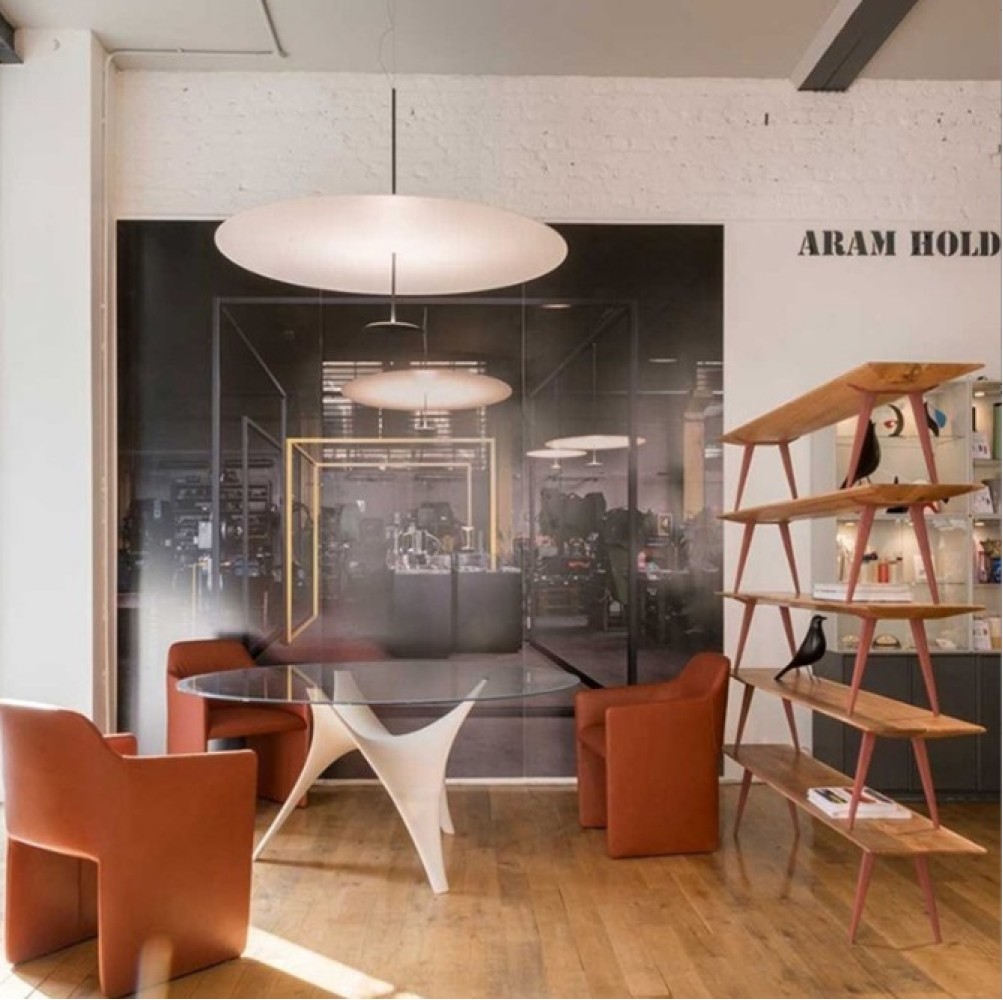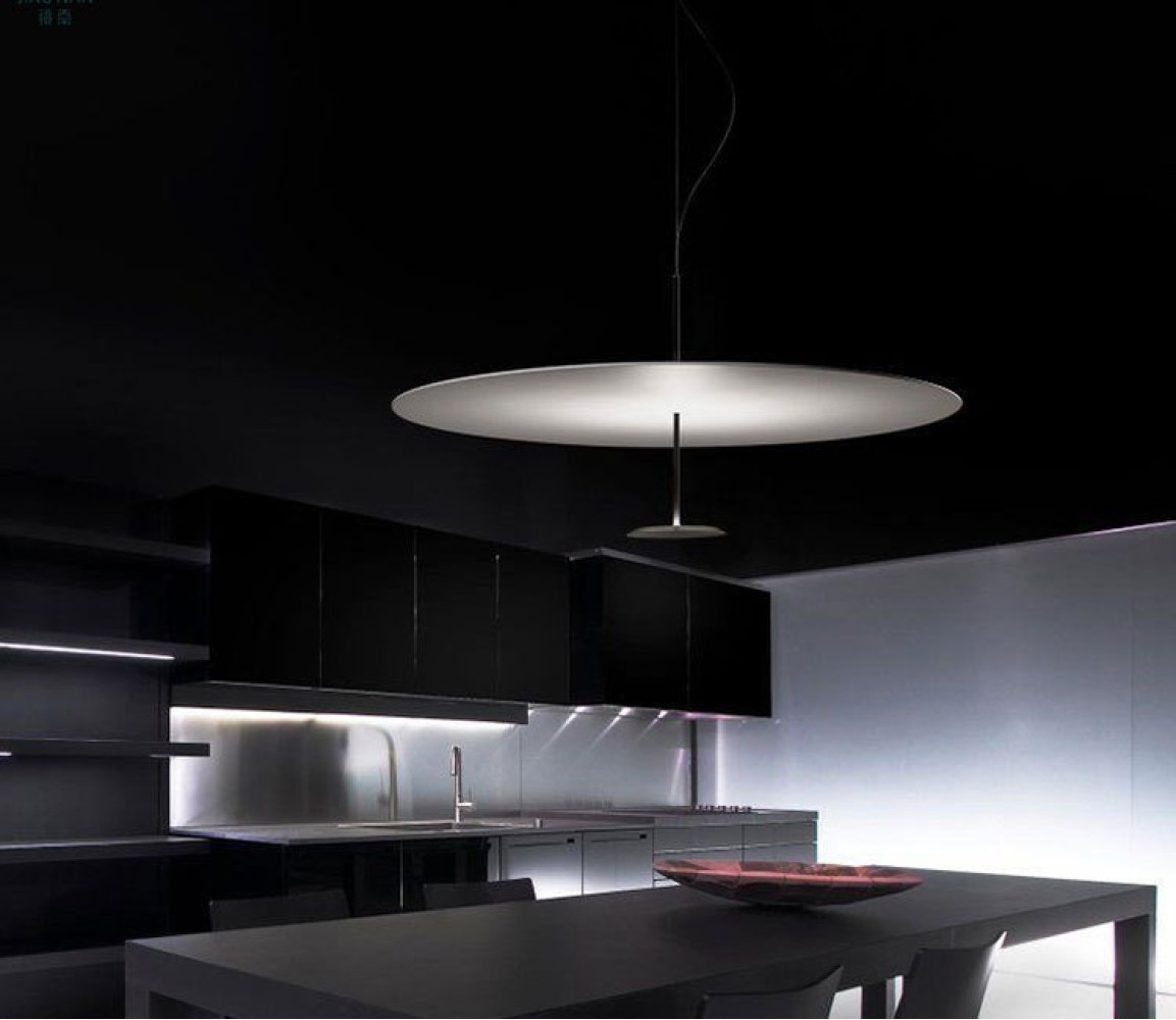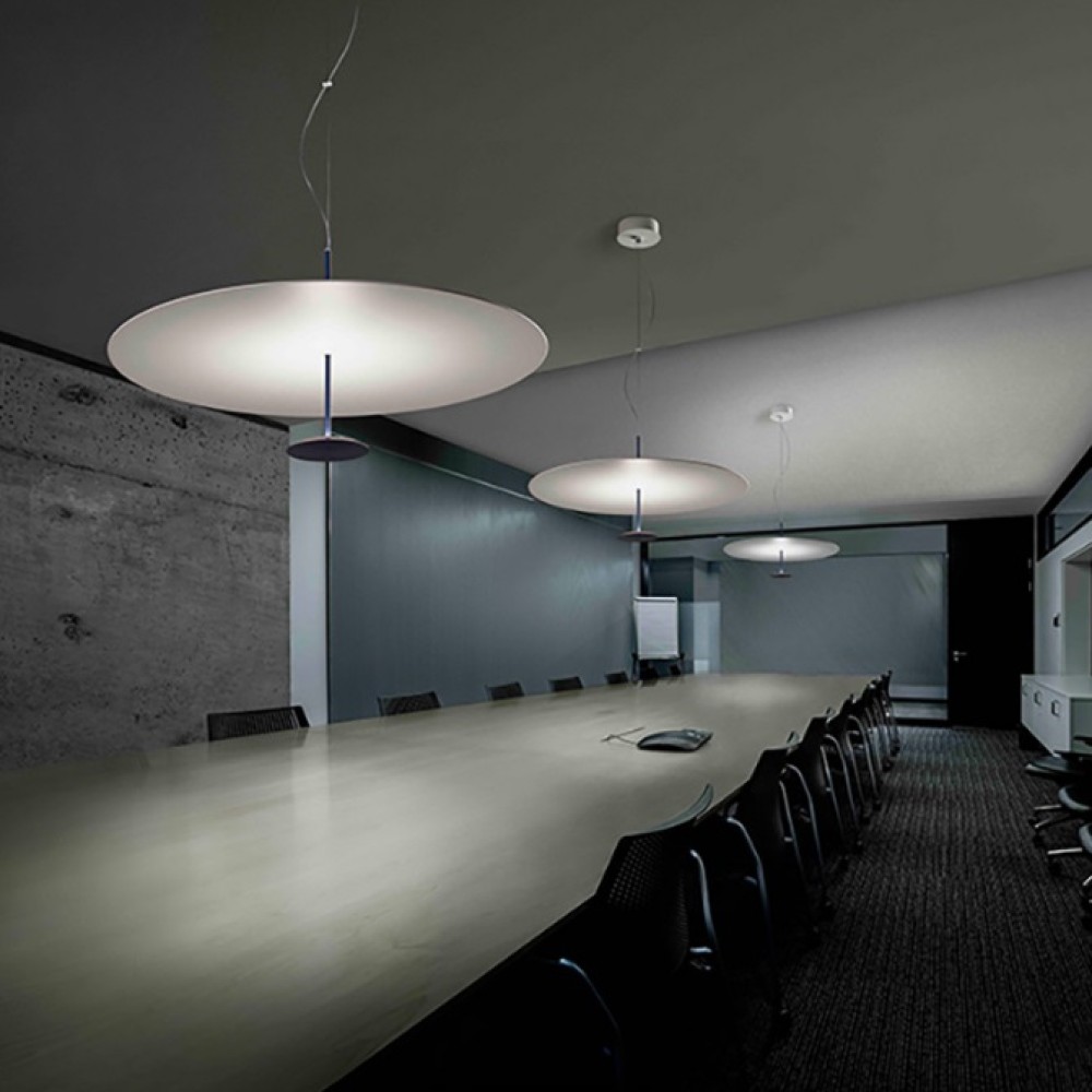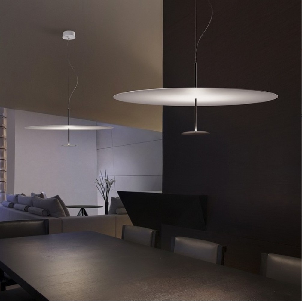 Подвесной светодиодный светильник серии MATEA2 с тонким дисковидным плафоном на вертикальной стойке