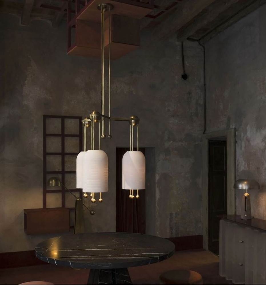 Светильник DZN-13898 ЗОЛОТАЯ БРОНЗА ` D850/H1000/3/E27/40W белое матовое стекло LANTERN