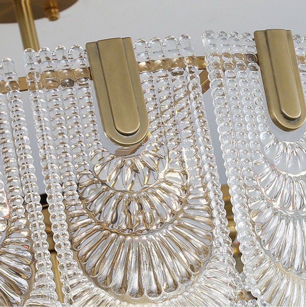 Дизайнерская подвесная люстра создана в трендовом стиле модерн. Одноярусный корпус и подвес-цепь созданы в бронзовом цвете. По окружности каркаса размещены прозрачные стеклянные пластины с рельефной поверхностью, закругленные в нижней части. Мы предлагаем Вам купить люстру в г.Казани в нашем интернет-магазине и при необходимости сразу заказать ее доставку в любой город. Аналог:Подвесная люстра LAURENCE D38.5 от ImperiumLoftAmbrella Light Подвесная люстра TR5388Потолочный светильник ERNESTA by Romatti, 6 / 50*25Modern Chandelier Cave DS221961Подвесная люстра Moderli Valensia V8060-8PНастенный светильник Indigo V000026Торшер NAPOLI LEVINA, прозрачныйПотолочная люстра Lampatron LAURENCE CHЛюстра "Молси" 6хЕ14 золото 50х50х28 смПотолочная люстра Art Deco Murano Kaiser Leuchten CEILING lamp от ImperiumLoft